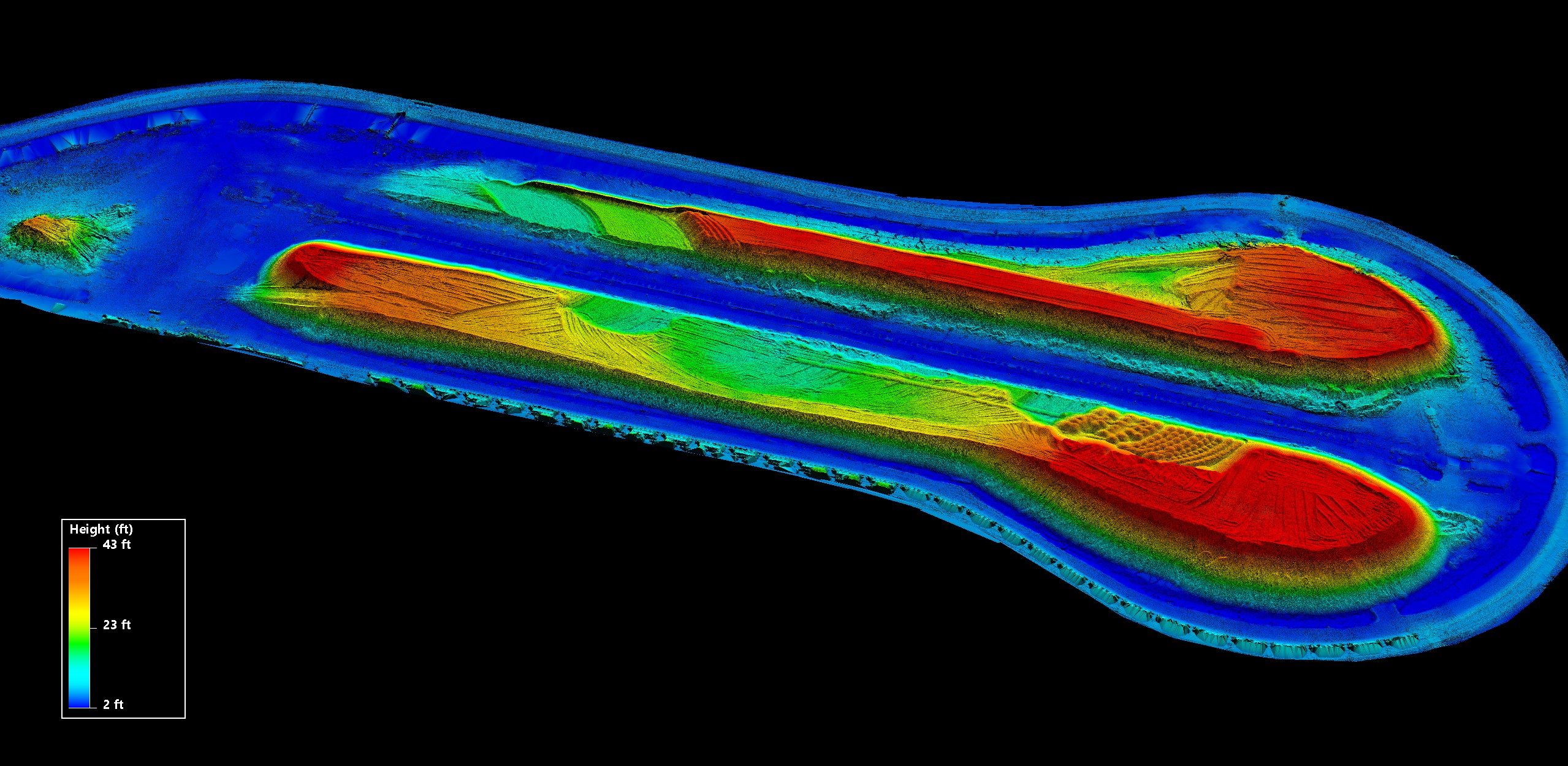 Let UAS Global Services remove the on-site clutter from the equation with an accurate bare-earth model. Track runoff routes, retention requirements, and capacity numbers more readily. There are a lot of environmental requirements for maintaining a large mine or waste management facility. Let our experienced drone LiDAR team relieve the burden of collecting that data, so you can focus on your expertise.